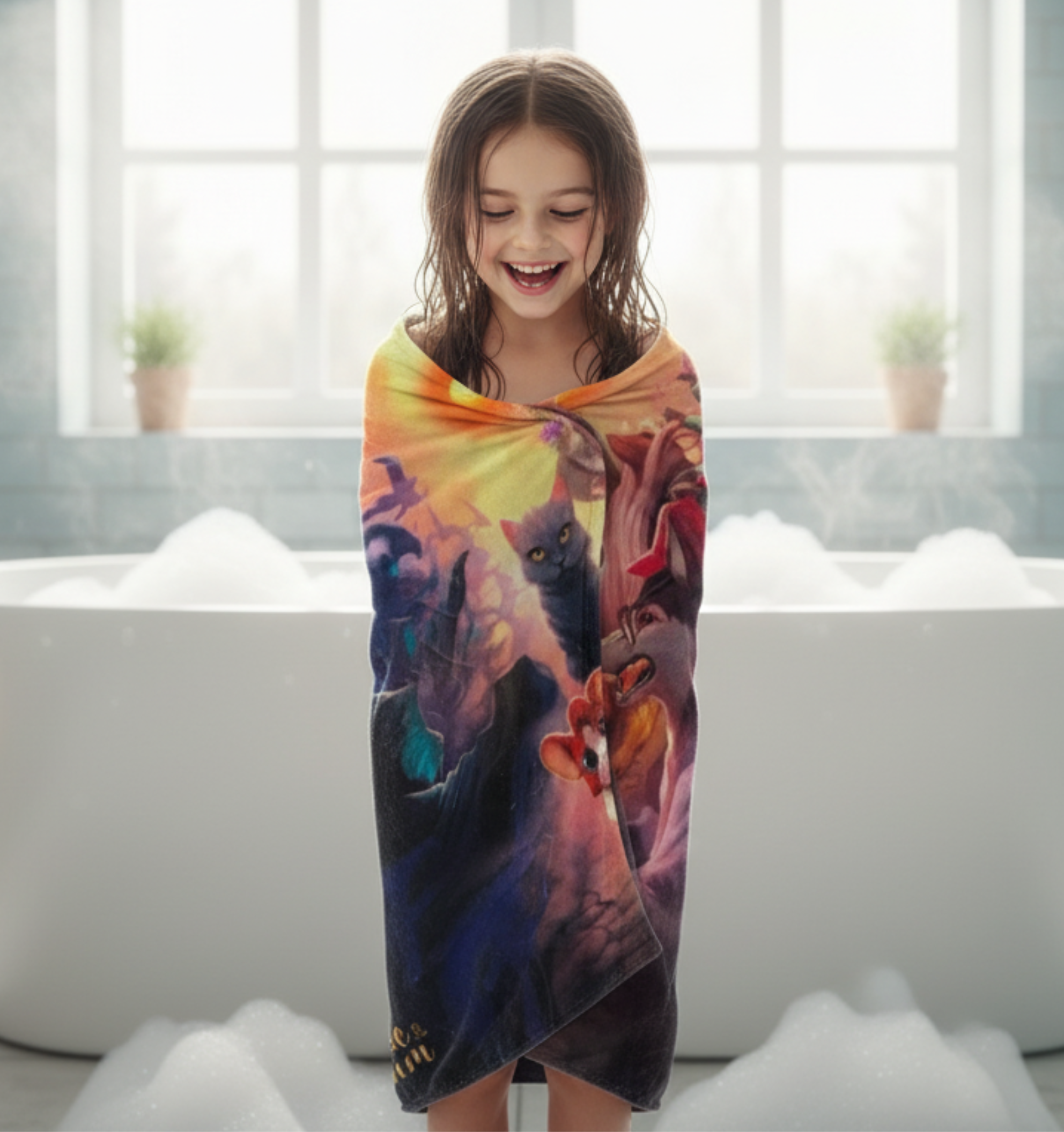Mjuk, färgglad och fylld med äventyr – perfekt efter bad, på stranden eller bara att mysa med hemma. Låt Musse och Helium följa med dig i vardagen!